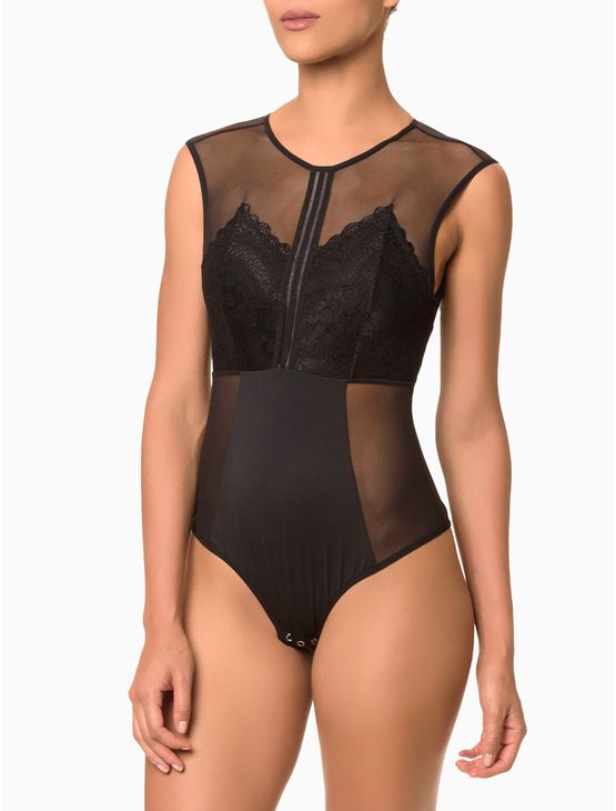 Body Renda Tule E Microfibra - Preto - L