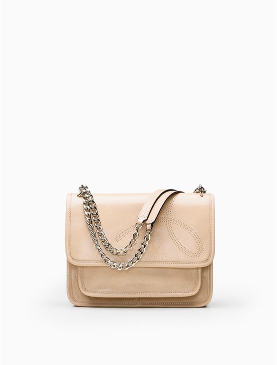 Bolsa Média Alça Corrente Bordado Ômega - Nude - U